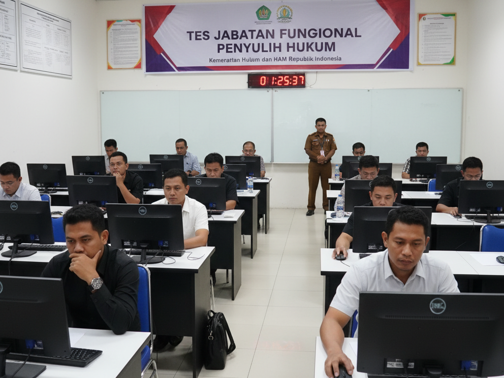 Uji Kompetensi Jabatan Fungsional Penyuluh Hukum (JF PH) merupakan tahapan penting dalam memastikan profesionalisme aparatur yang berperan sebagai garda terdepan dalam penyebarluasan informasi hukum kepada masyarakat. Seorang Penyuluh Hukum tidak hanya dituntut memahami teori dan peraturan perundang-undangan, tetapi juga mampu menginternalisasi nilai-nilai keadilan, moralitas, serta kemanusiaan dalam setiap kegiatan penyuluhan. Oleh karena itu, ujian ini dirancang untuk mengukur sejauh mana kompetensi teknis, manajerial, dan sosial kultural penyuluh hukum telah terbentuk secara komprehensif. Hasil dari uji kompetensi ini menjadi tolok ukur apakah seorang ASN layak naik jenjang jabatan atau memerlukan peningkatan kapasitas lebih lanjut melalui pembinaan dan pelatihan.