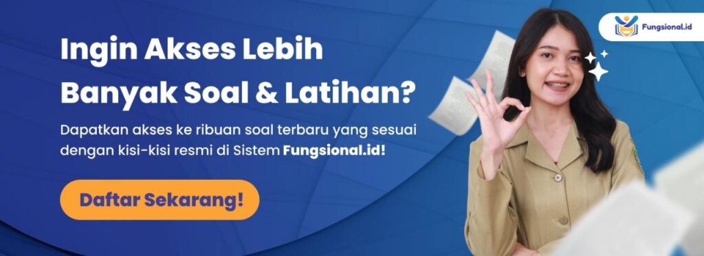 Jangan hanya membaca contoh soal, latih kemampuan Anda secara menyeluruh di Fungsional.id. Platform ini menyediakan ribuan latihan soal Pengadaan Barang/Jasa Pemerintah (PBJP) lengkap dengan pembahasan detail, simulasi berbasis CBT seperti ujian resmi, dan analisis hasil belajar. Dapatkan pengalaman belajar yang interaktif, terarah, dan sesuai regulasi terbaru LKPP agar Anda siap menghadapi uji kompetensi dengan percaya diri dan hasil terbaik.